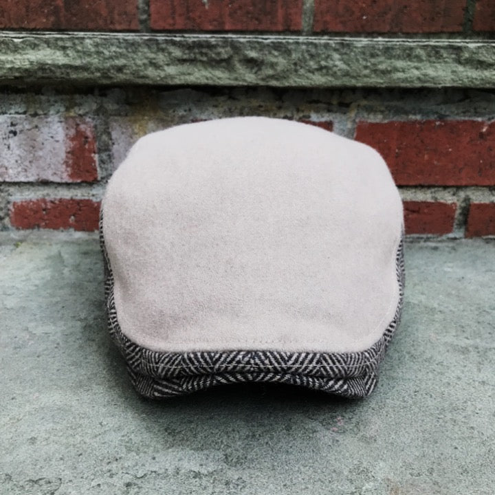 Wool traditional style scally cap with an accent of herringbone on the side.