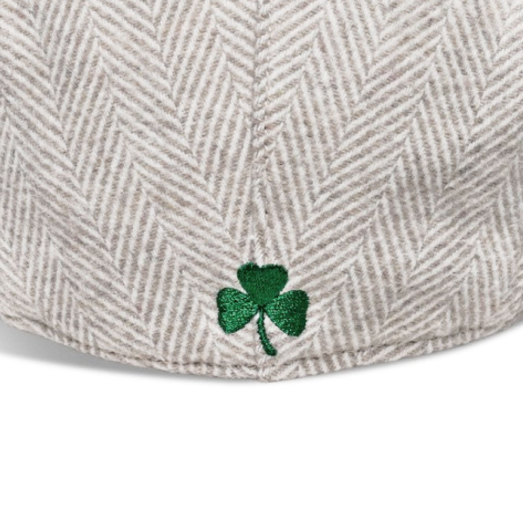 The ‘Irish’ Boston Scally Cap boasts a unique herringbone fabric with a green embroidered shamrock on the back. This bold, yet subtle cap is a new classic.