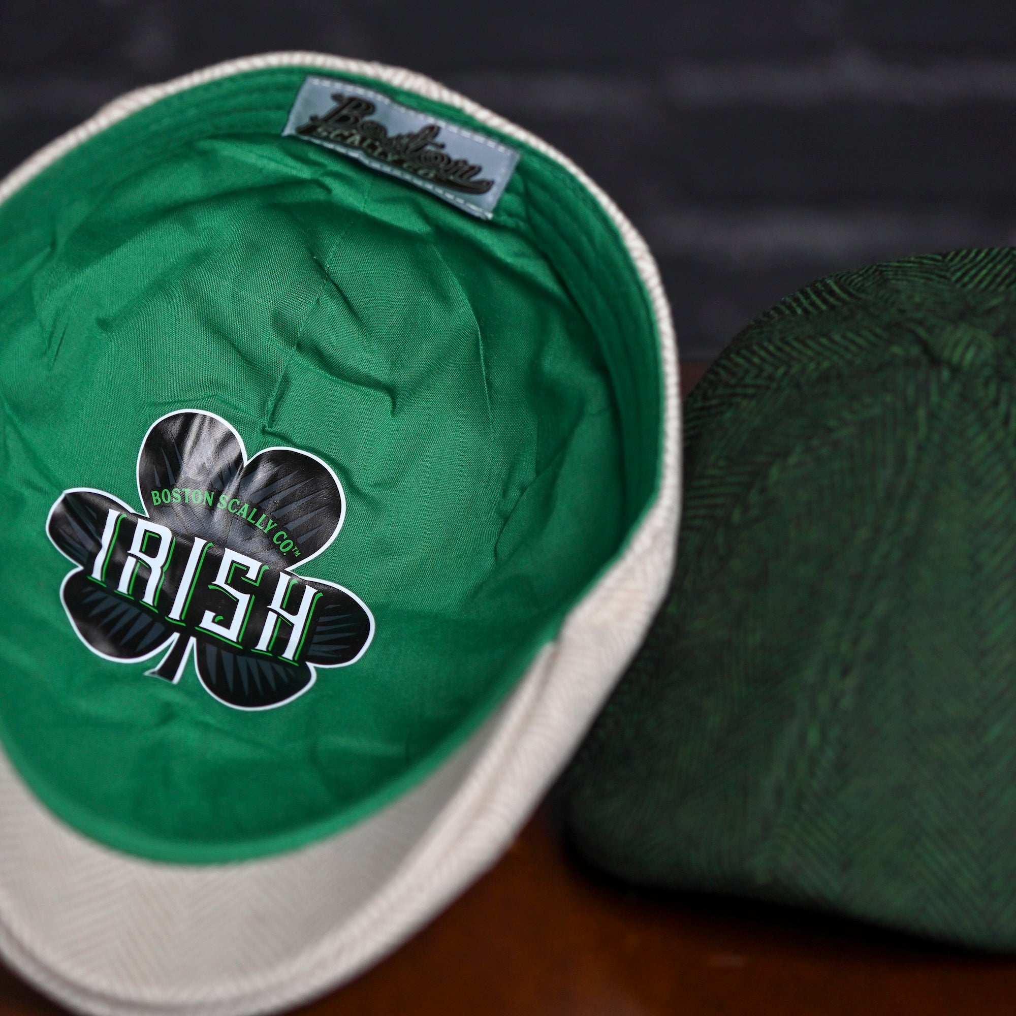 The 8 panel ‘Irish’ Boston Scally Cap features a clean herringbone fabric and is finished with a green embroidered shamrock on the back. Traditional, understated, and built to stand out. A staple in your cap collection.